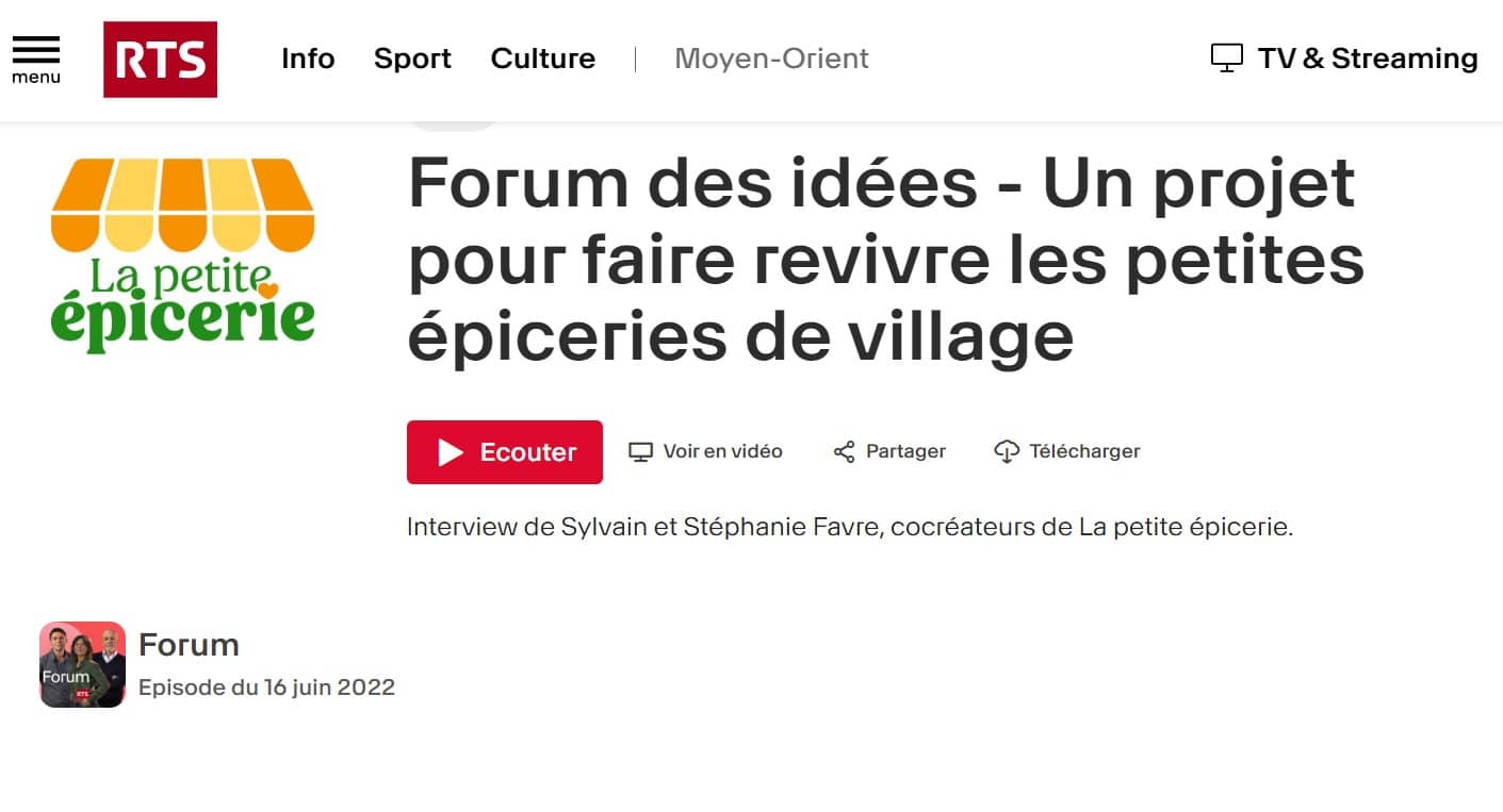 RTS/ Forum des idées – Un projet pour faire revivre les petites épiceries de village