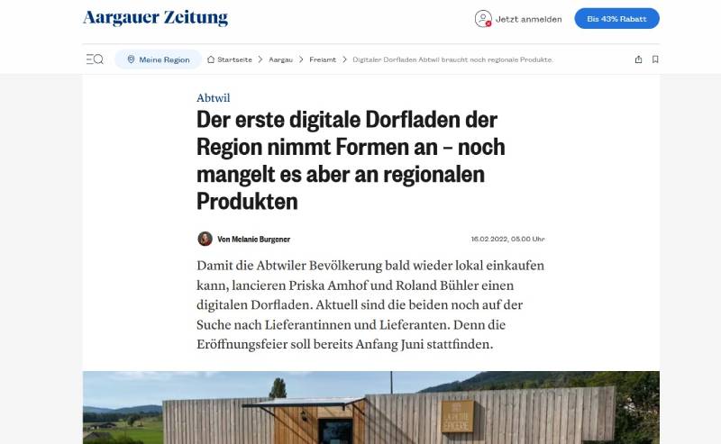 Aargauer Zeitung: Der erste digitale Dorfladen der Region nimmt Formen an – noch mangelt es aber an regionalen Produkten